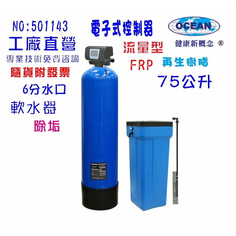 品名:75公升電子式流量型全自動控制軟水器