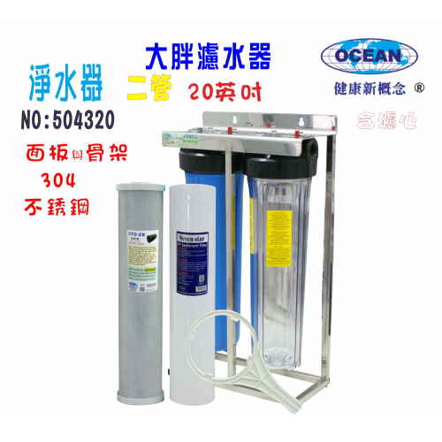 貨品名稱:20"大胖二管透明藍色304白鐵不鏽鋼面板骨架過濾器白鐵螺絲固定