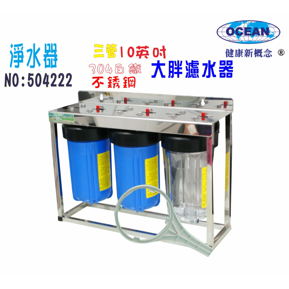 貨品名稱:10"大胖三管透藍 304腳架過濾器(不含濾心)