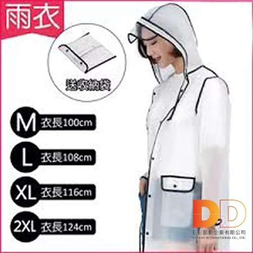 【生活良品】EVA透明黑邊雨衣-有口袋設計-附贈防水收納袋(時尚風衣款男女適用)日日好物