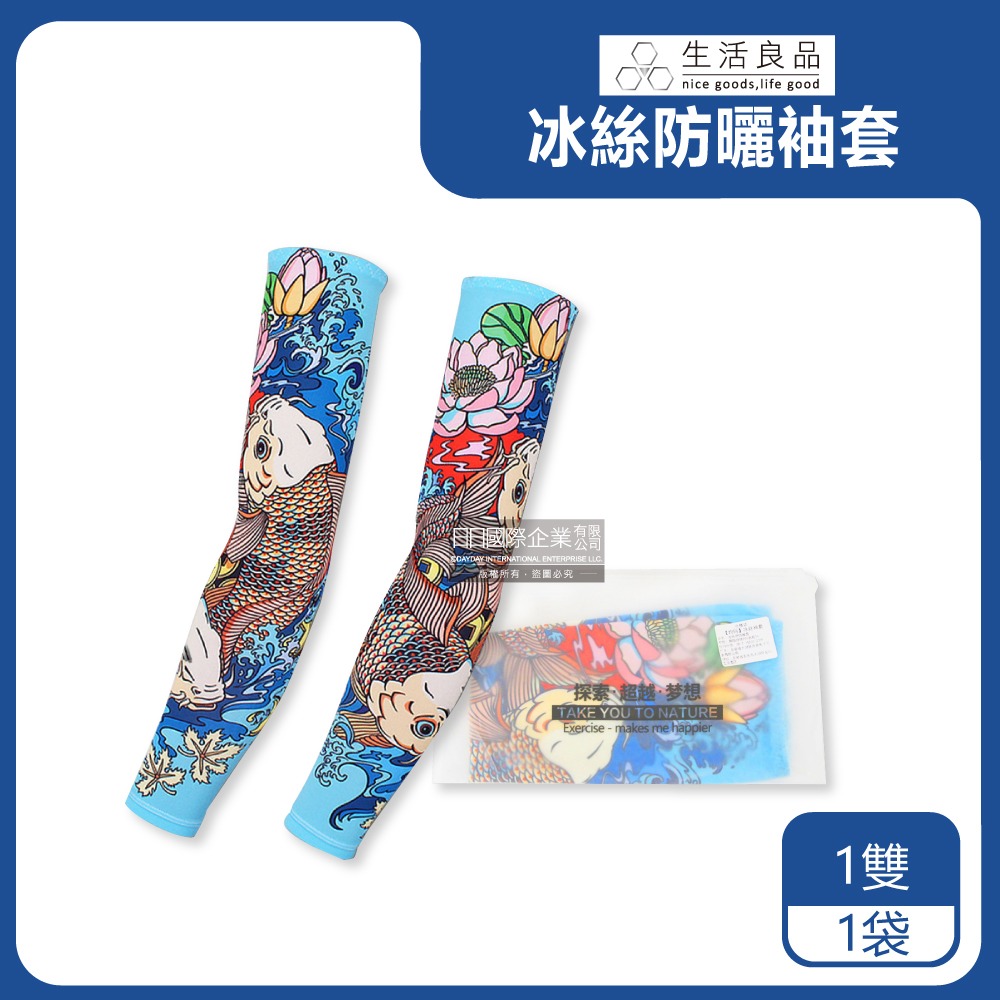 ●品名:抗UV冰絲涼感透氣仿紋身鯉魚圖騰印花男女防曬袖套