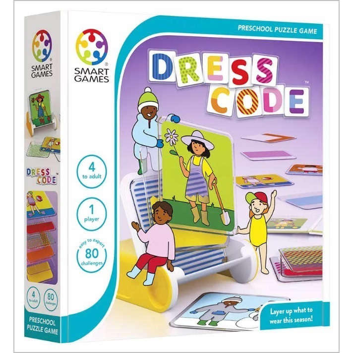 ABS塑膠製益智教具,全套含 1 個遊戲盒、4 片主角題目板、8 片正方形色板、1 本題目本,紙盒裝(尺寸約 24.2x24.2x4.5 cm),適合年齡:4歲以上