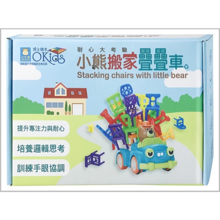 塑膠製疊疊樂益智遊戲,全套含疊疊車x1、彩色椅子x50、使用說明書x1,紙盒裝(尺寸約 28.5x19.2x8.5 cm),適合年齡:3歲以上