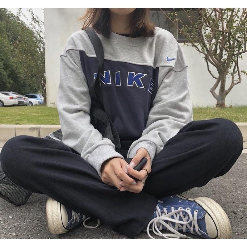 出清特價 Nike vintage 古著 刺繡 字母 拼接 拼色 大學T