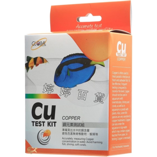 ●此外,部分魚種對銅非常敏感。另外自來水經過管線後也會含有銅,所以銅元素的測試有其必要