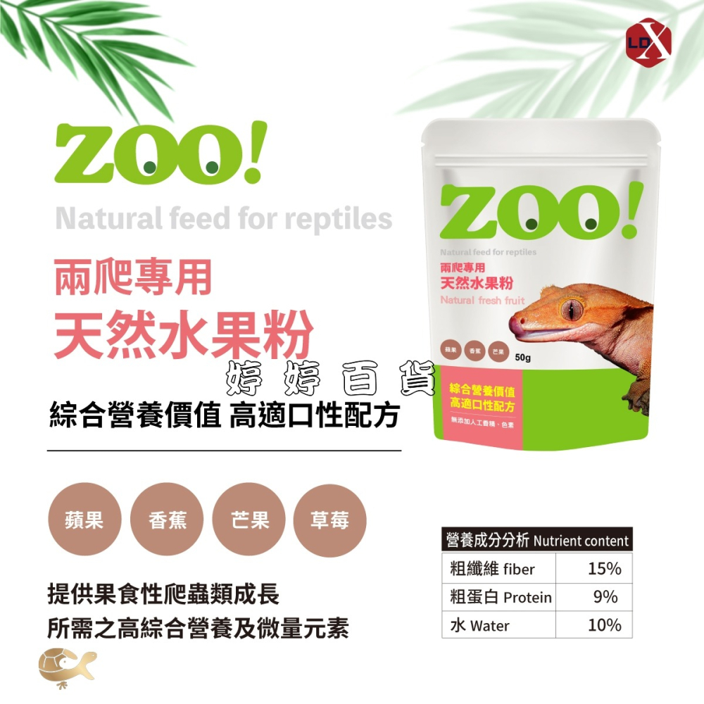 ●使用蘋果、芒果、香蕉等多種天然水果成分,提供果食性爬蟲類成長,所需之高綜合營養及微量元素