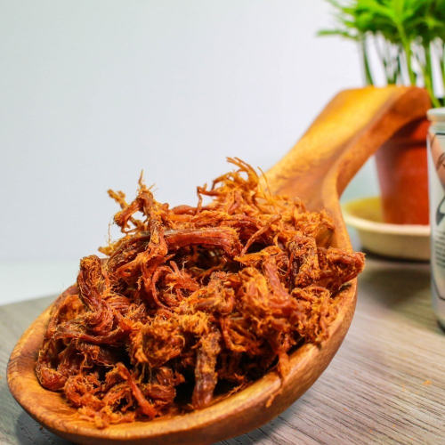 ▶精選國產CAS檢驗合格安心豬後腿肉瘦肉為原料,保持肉質新鮮、安全、衛生,製作流程經人工切塊、拉條、獨家滷汁慢火焙炒,再經遠紅外線乾燥爐烘乾而成, 口感鮮嫩甘甜美味。