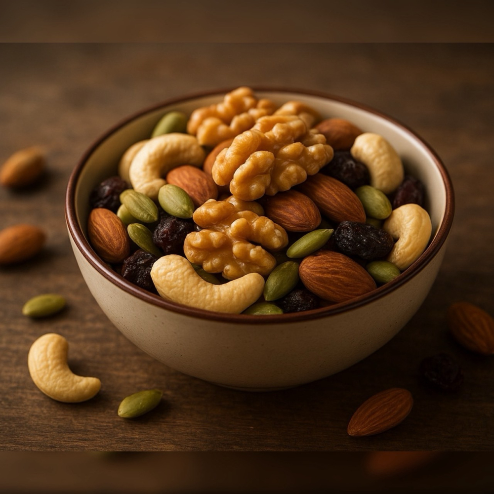 成份:杏仁果、腰果、南瓜子、核桃。營養標示 每100公克 熱量606.8大卡 蛋白質27.5公克 脂肪 50.1公克 飽和脂肪8.0公克 反式脂肪0公克 碳水化合物15.4公克 糖4.7公克 鈉10.5毫克。
