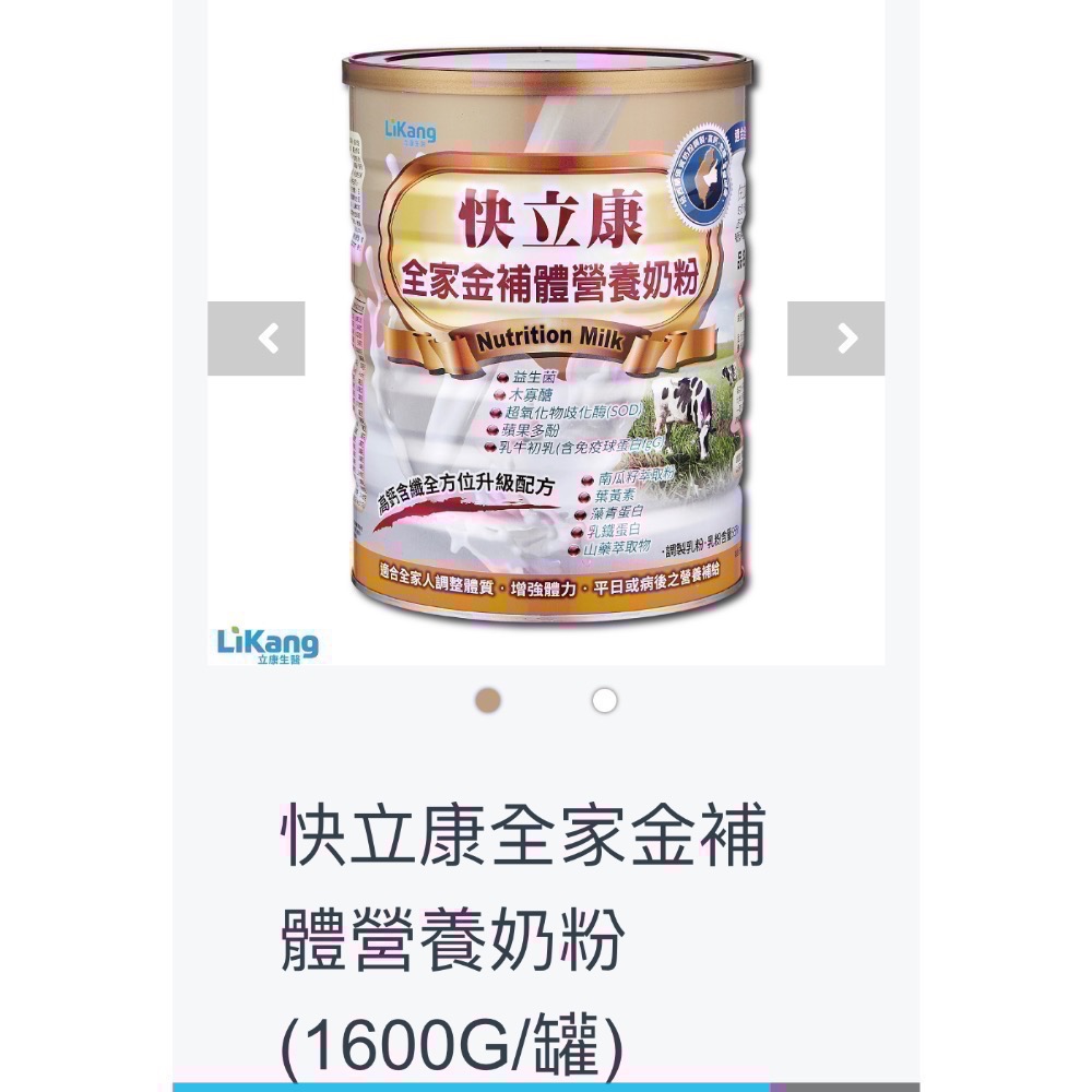 快立康全家金補體營養奶粉(1600G/罐)