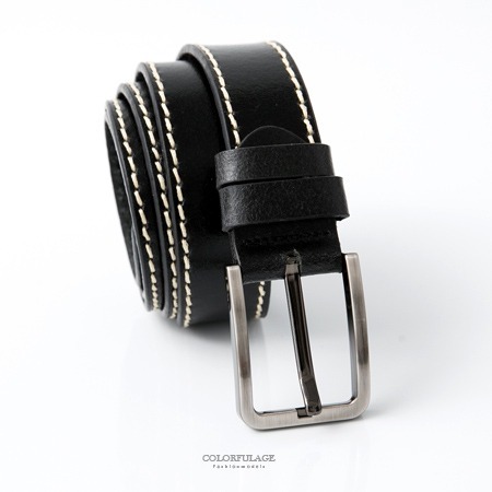 黑底米白色車邊設計真皮皮帶 素面全黑色設計,搭配米白色車線 整體簡單中帶點造型,型男百搭單品 質感皮革設計,採用好搭的黑色系列 簡約素雅款造型,適合各種款式的褲子 簡單的款式,也可以為型男注目焦點