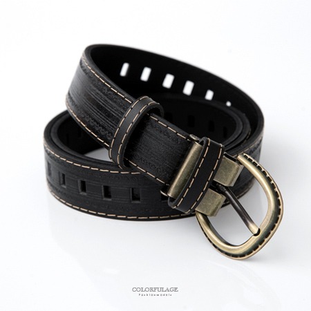 亮面黑色壓邊車線設計皮帶 基本百搭黑色,搭配復古銅扣頭 個性時尚有型,型男百搭單品 復古質感設計,整體採用亮黑打造 壓線車邊簡約壓紋圖案,方格洞孔造型 簡單的款式造型.也可以為型男注目焦點