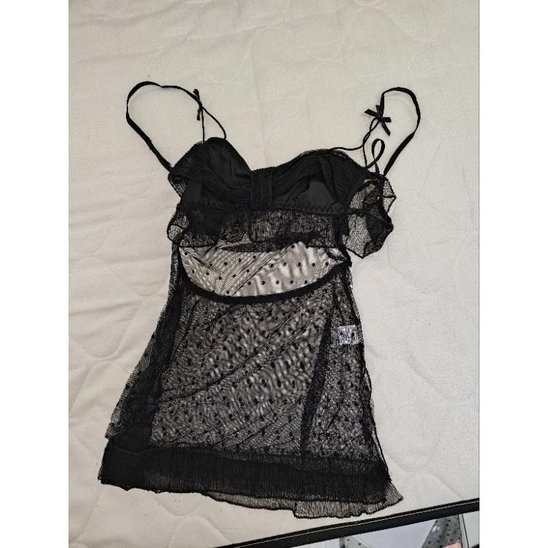 黑色 透視 點點 性感睡衣 free size(實際大小為S號) 附丁字褲