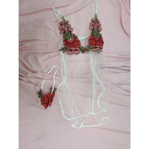 玫瑰圖樣修飾 透明 白色 性感睡衣 FREE SIZE 最大可到2XL