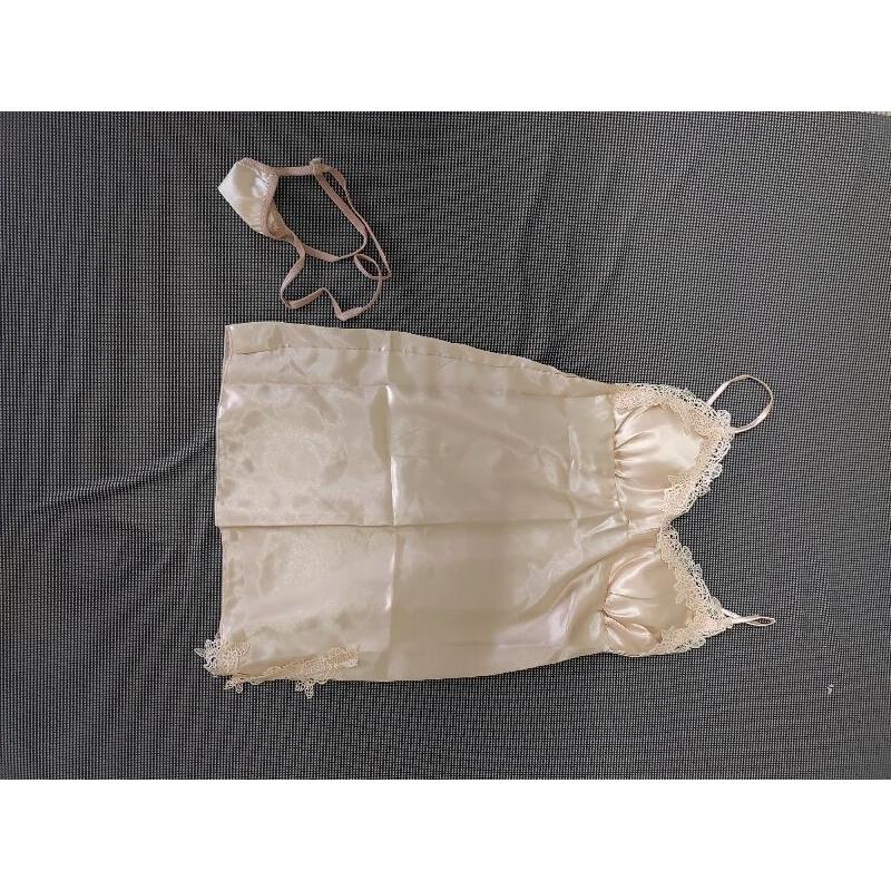 大尺碼 冰絲緞面 細肩帶 睡衣 2XL 香檳色 含胸墊與丁字褲