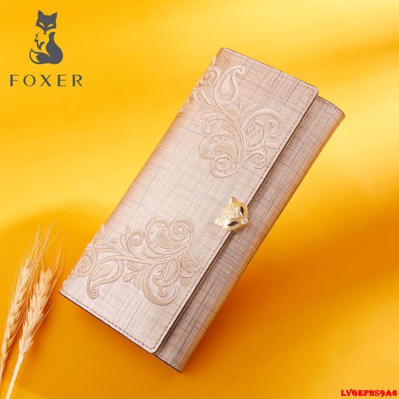 金蟬生活百貨館-金狐貍錢包女士長款2022新款時尚繡花錢夾包牛皮手包大容量手拿包