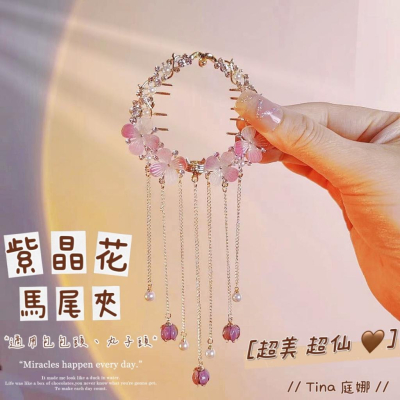 💕韓系ins氣質紫晶花高馬尾髮夾💕