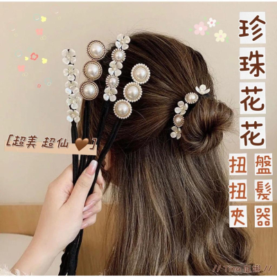💕韓系ins氣質珍珠花花盤髮器扭扭夾💕