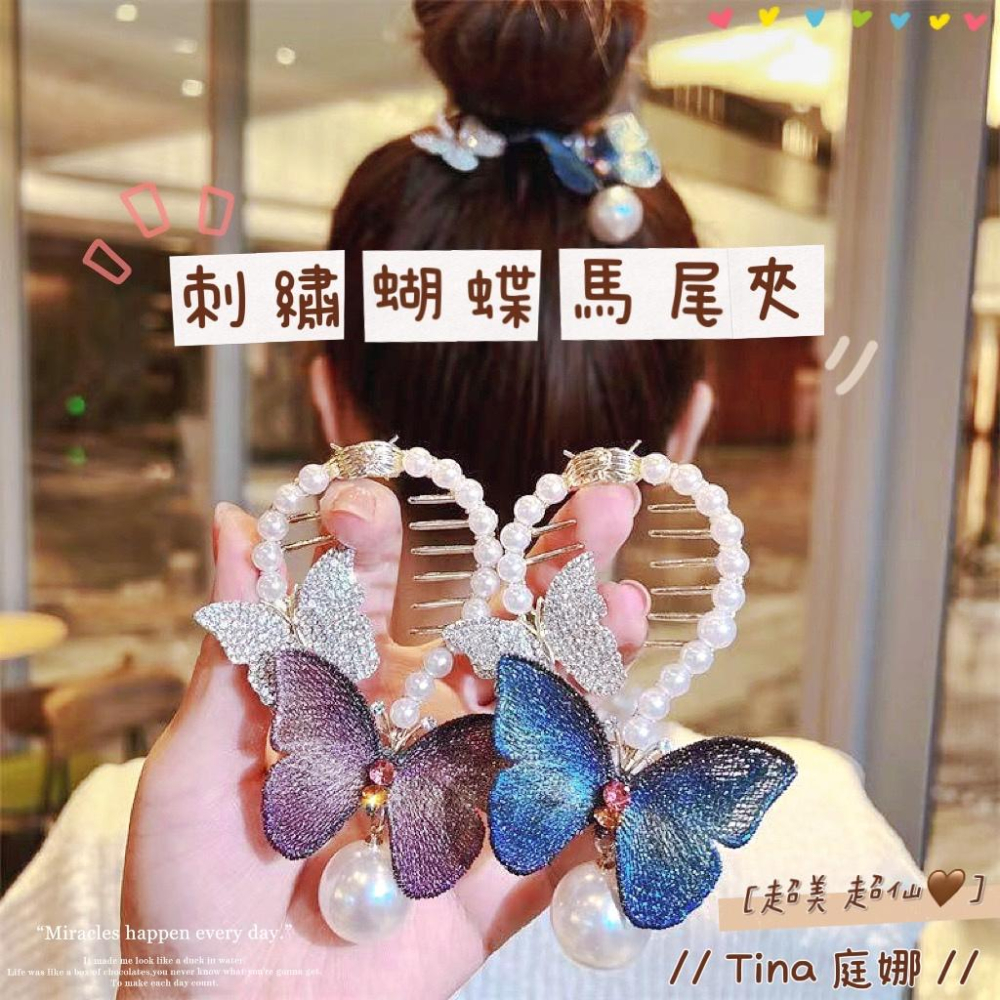 💕韓系ins氣質刺繡蝴蝶高馬尾髮夾💕