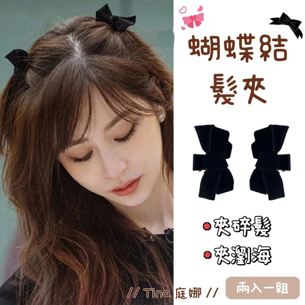 💕韓系ins黑色絲絨蝴蝶結劉海髮夾💕