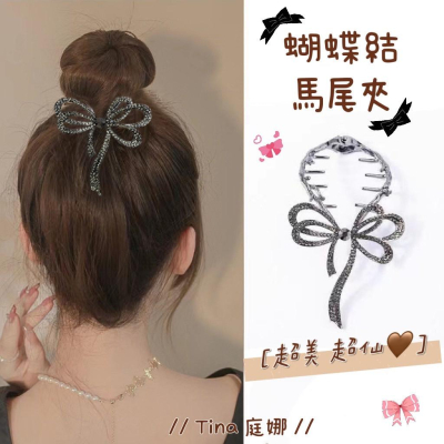 💕韓系ins氣質黑蝴蝶結高馬尾髮夾💕
