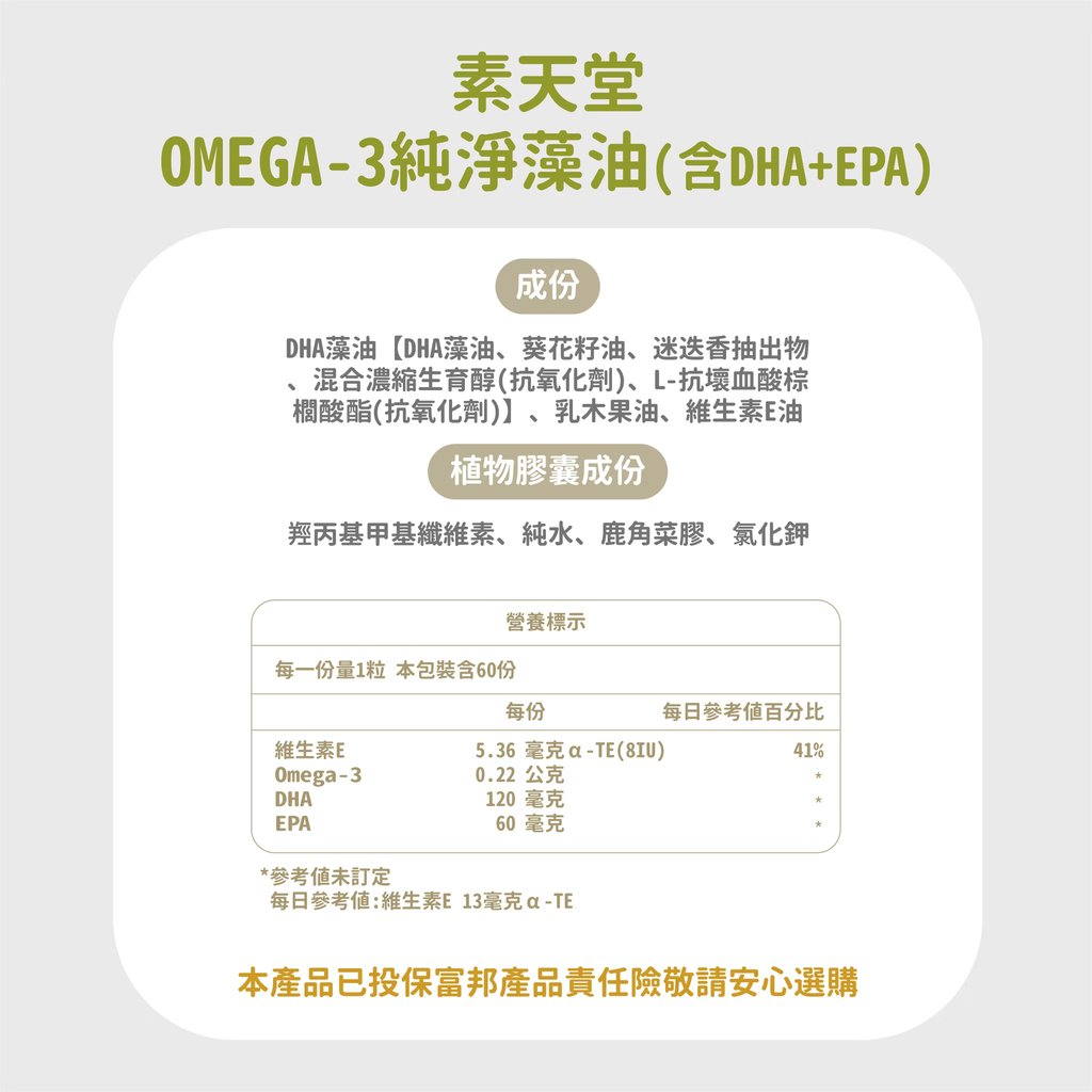 《素天堂》OMEGA-3 純淨藻油 含DHA+EPA(60顆/瓶)~素食OMEGA-3最佳來源|素易購