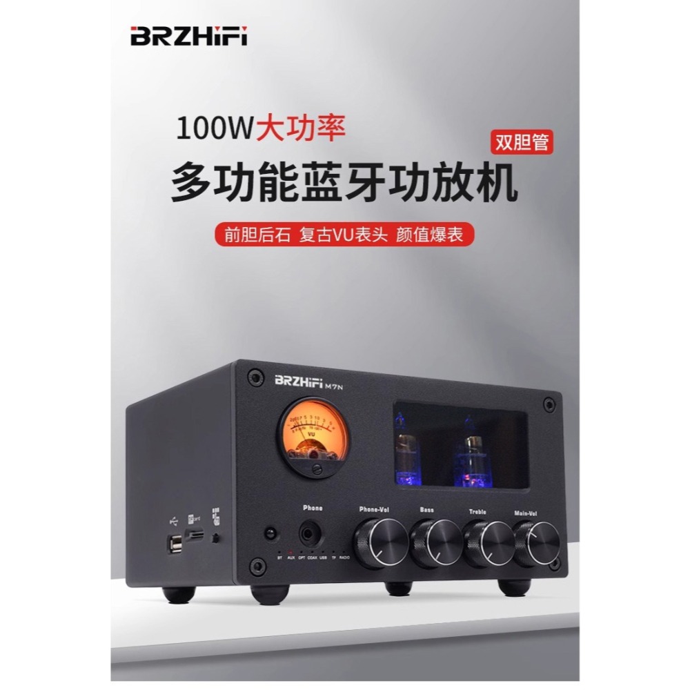 洛克小舖-BRZHIFI M7N多功能真空管高級音響是一台顏值超高的音響.可以接rca類比訊號.還可以接光纖輸入.同軸輸入的數位訊號.還有usb隨身碟的無損音樂撥放功能.最重要的賣點還是使用真空管來做前即訊號放大.而且還有前級訊號輸出.訊號可以輸出給其他擴大機來推動.這可是一大亮點.還有還有正面可以看到復古造型.右邊可以看到兩隻真空管站立.下方則是音量跟高低音調整.最讓我感動得還是有監聽耳機孔的功能啊.這亮點之2.不過這台出貨時間會久一些.下標前請先詢問.感恩