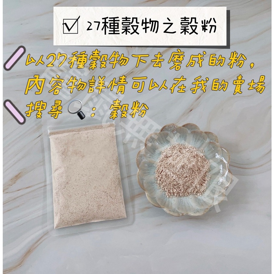 🌟成分:炒熟紫米、圓糯米、紅米、燕麥、大麥、小麥、蕎麥、麥片、小米、糙米、黑芝麻、白芝麻、薏仁、白高粱、米豆、雪蓮子、紅豆、綠豆、黑豆、黃豆、紅扁豆、蓮子、芡實、小麥胚芽、紅黎麥、白黎麥、黑藜麥、⋯等27種穀物磨成的粉