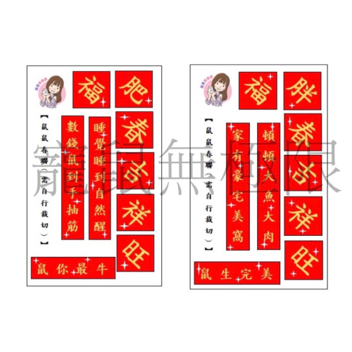 🌟品名:倉鼠迷你春聯 【2款各1款 ,需自行裁切】。