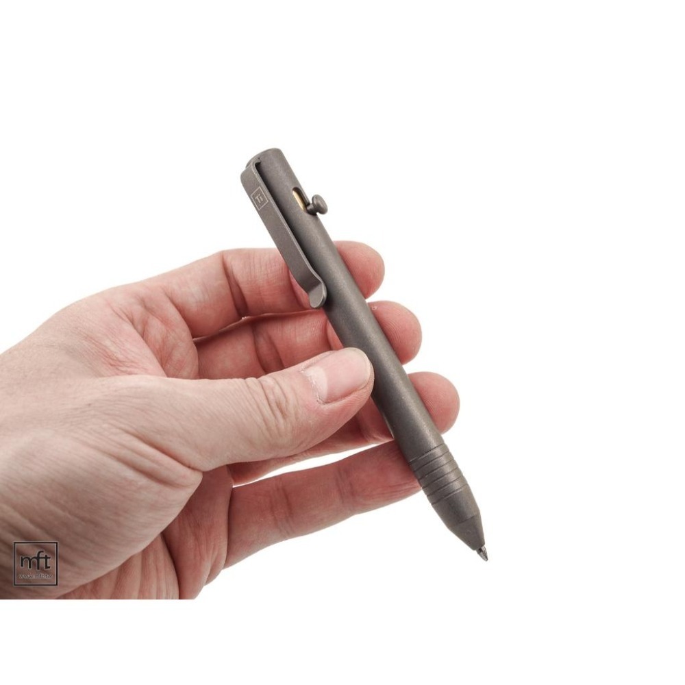 這款槍機筆是以鈦合金CNC加工切削製造,整支筆沒有塑膠構造,筆身無多餘裝飾,只有前端有5道防滑用的同心紋路,結構扎實簡潔,尺寸精簡,長度僅116mm,原廠採用Schmidt P900筆芯,相容所有Parker系統筆芯。槍機結構的行程較短(如果是和Tactile Turn槍機筆比較的話)筆芯伸出收回速度很快。筆身連接一個深式背夾,背夾可以旋轉180度安裝於另一側。(需要一支Torx 8起子將尾端螺絲拆開後換邊安裝)