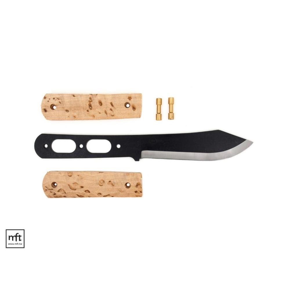購買後只需要上膠,將握柄片與刀胚黏合,裝上螺絲,打磨掉突出的螺絲,修整刀柄表面後,即可完成,木柄款式可以上一點蜂蠟或是護木油在表面。和BRISA的套件比起來,NKD的握柄片預留的材料較多,邊角沒有做3D削磨,所以需要多一點砂磨的作業。