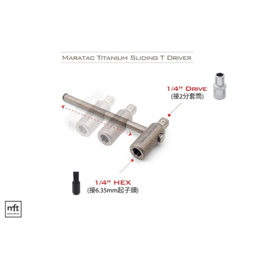 2. 販售不包含 Maratac Titanium Sliding T Driver之外的示意物件,照片中銀色的2分套筒需自行另外購買。