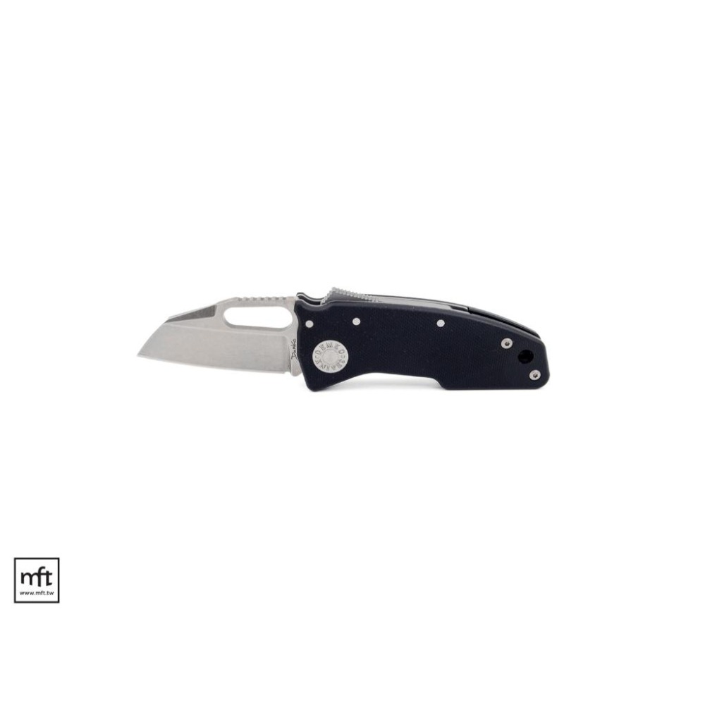 本款Nano Shark是繼Demko Shark Cub(縮短版的AD20.5)之後推出更短版的Shark Lock折刀(靈感來自於訂製版的Mini AD22折刀),刃長僅5.4公分,握柄長9公分,一般大小成人手掌可以滿握,採用CPM 20CV不鏽鋼鋼材,石洗刃面,刃型為Wharncliffe羊蹄刃型,平磨刃角,深式背夾安裝在右側,另外附一個可以安裝在左側的背夾,可依需求自行安裝,握柄為G10材質,尾端有繩尾孔。