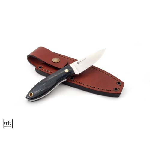 成刀版本的握柄片採用Micarta材質,目前有三款顏色:黑色Black Micarta,酒紅色Plum Micarta以及綠色Green Micarta,都搭配咖啡色皮刀鞘。