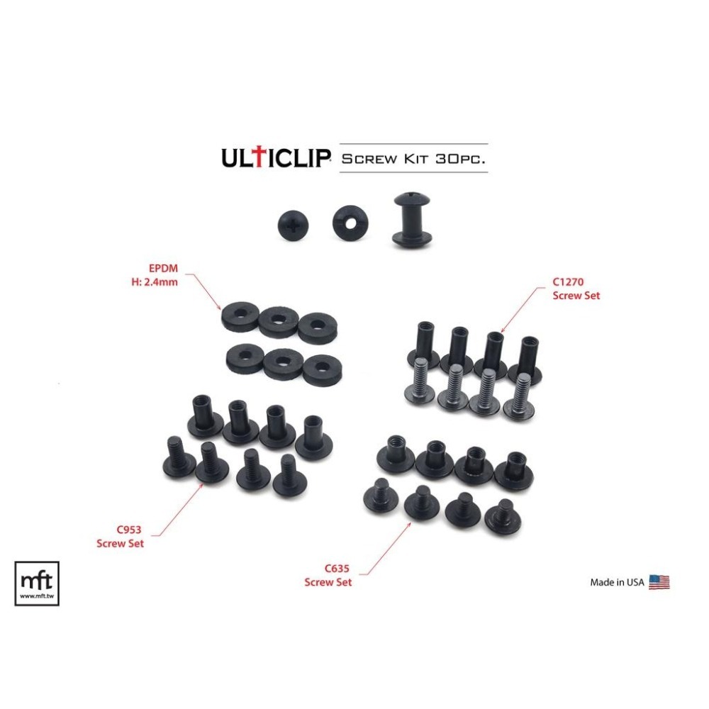 本款為:UltiClip Screw Kit 30pc 組合螺絲與墊片套件