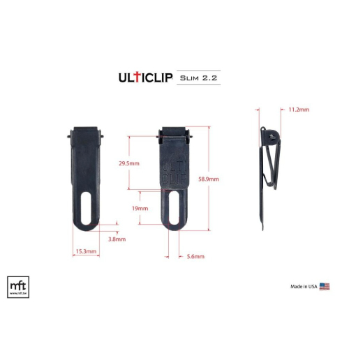 UltiClip的特色是:隱匿性高,夾持的力道非常強(超過一般市面上夾具的10倍以上的力道),目前共有5種不同尺寸的UltiClip扣夾,可以運用在各種不同的尺寸的刀鞘或是槍套,幾乎可以說是目前市面上最強悍好用的夾具,如果你自己有製作設計Kydex刀鞘或是皮革刀鞘,UltiClip更是可以輔助你製作出非常實用的作品,UltiClip是高品質且好用的必備夾具,MFT絕贊推薦。