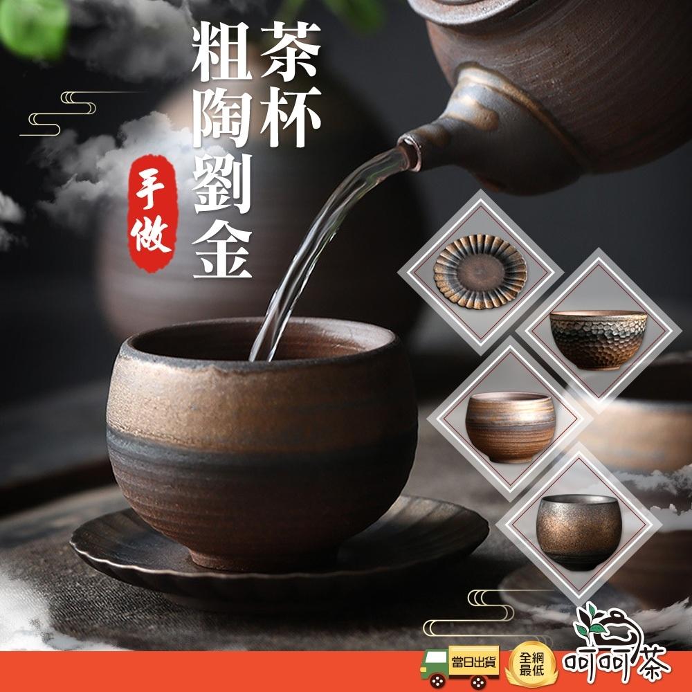 【呵呵茶】日式粗陶茶杯 鎏金 茶具 品茗杯 柴燒杯 泡茶杯 茶杯 鎏金杯 手工茶具 粗陶 高溫燒 泡茶用具 茶杯 茶道