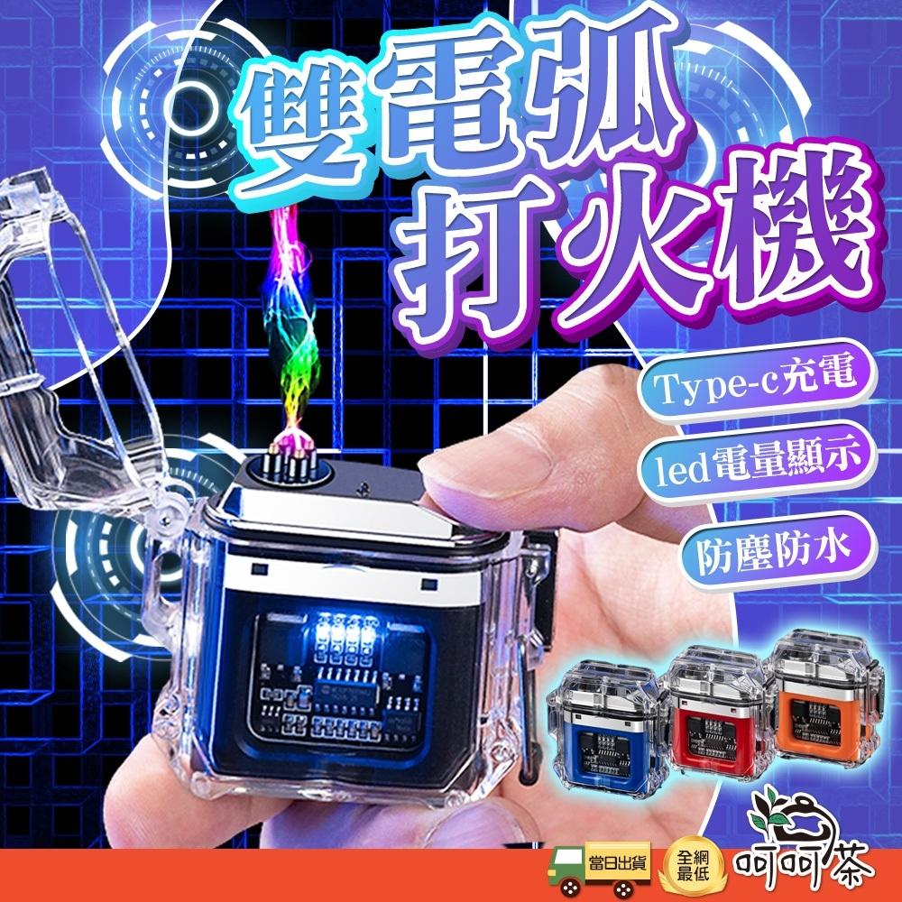 【呵呵茶】 電子打火機 透明打火機 雙電弧打火機 防風打火機 電量顯示 防塵防水 充電式打火機 防水打火機 脈衝打火機