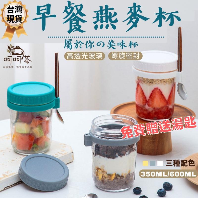 【呵呵茶】挑戰最便宜 🔥 韓風玻璃燕麥杯 早餐杯 送湯匙 燕麥杯 密封罐 密封杯 梅森杯 早餐杯 代餐杯 優格杯 麥片杯