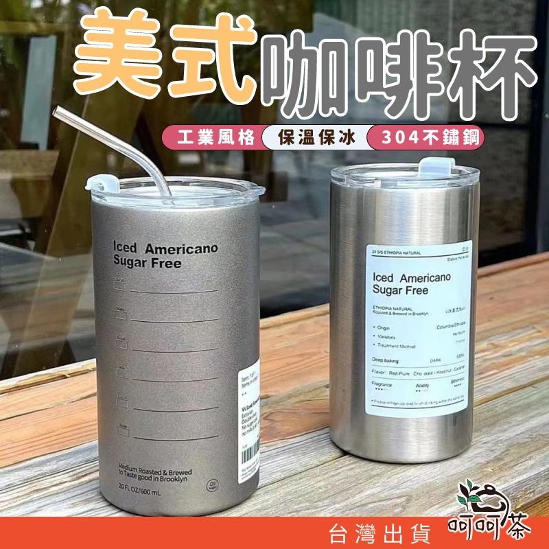 【呵呵茶】台灣現貨 送吸管 美式咖啡杯 雙層不銹鋼 保冷保溫杯 600ml 保溫杯 咖啡杯 不銹鋼杯 復古工業風 露營杯