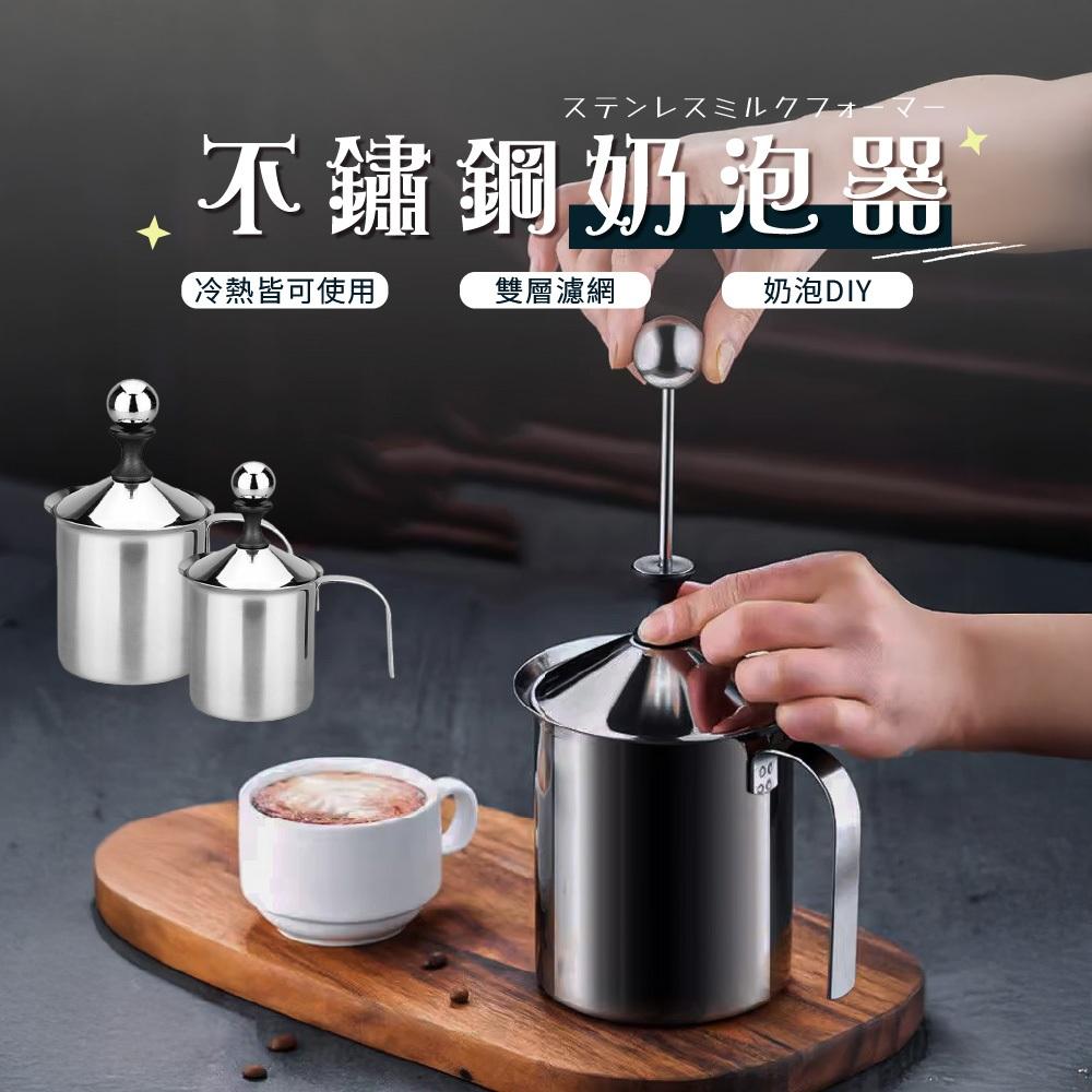 不鏽鋼奶泡器 咖啡打泡杯 奶泡壺 打奶泡器 手動奶泡器 咖啡奶泡器 奶泡機 打泡壺 奶泡器 雙層濾網 奶泡杯 打奶泡神器
