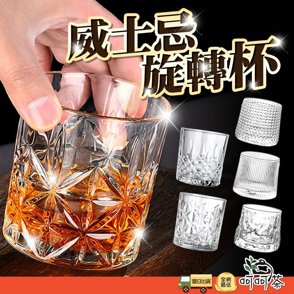 【呵呵茶】現貨 破損包換 超多款式 威士忌旋轉杯 威士忌酒杯 無鉛水晶杯 加厚玻璃洋酒杯 陀螺烈酒杯 不倒翁杯 陀螺杯
