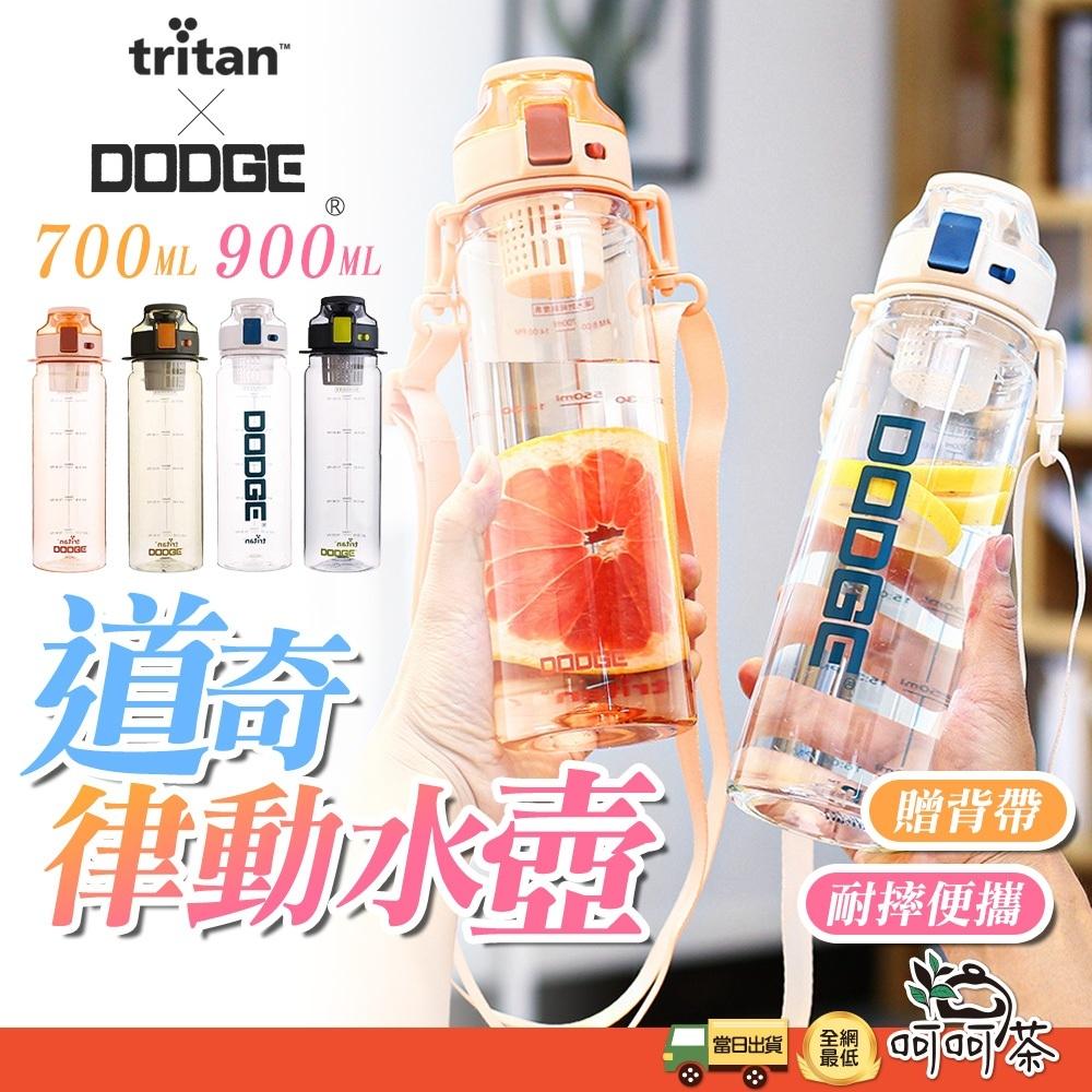 【呵呵茶】道奇律動水壺 贈背帶 運動水壺 環保杯 透明水壺 大容量水壺 TRITAN材質 簡約水壺 冷水壺 水瓶 附濾網