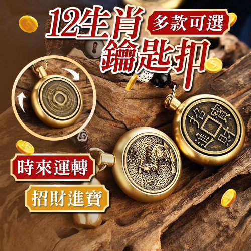 【呵呵茶】12生肖鑰匙圈 純銅鑰匙圈 扭轉乾坤 鑰匙圈 鑰匙扣 鑰匙圈吊飾 陀螺鑰匙圈 轉錢鑰匙圈 黃銅鑰匙圈 招財小物