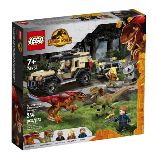 - 越野車與 2 個恐龍玩偶-這套 Pyroraptor & Dilophosaurus Transport(76951)盒組中有精采刺激的遊戲冒險等著孩子