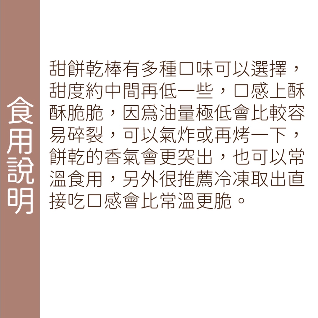 這款餅乾棒十分適合在無聊嘴饞時享用,或是追劇時做為零嘴,讓您不怕在無意中攝取過多熱量。
