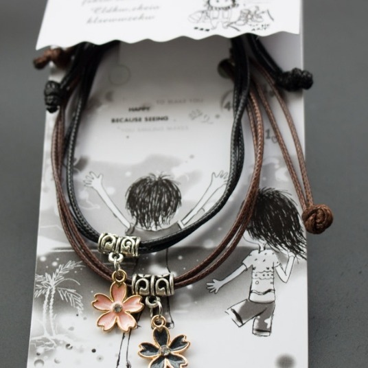 彩釉手鍊 狐狸 扶桑花 樹葉 時尚 情侶手鍊 皮繩蠟線男女手環 情人節禮品 手飾品🔱菁忻皂作🎶
