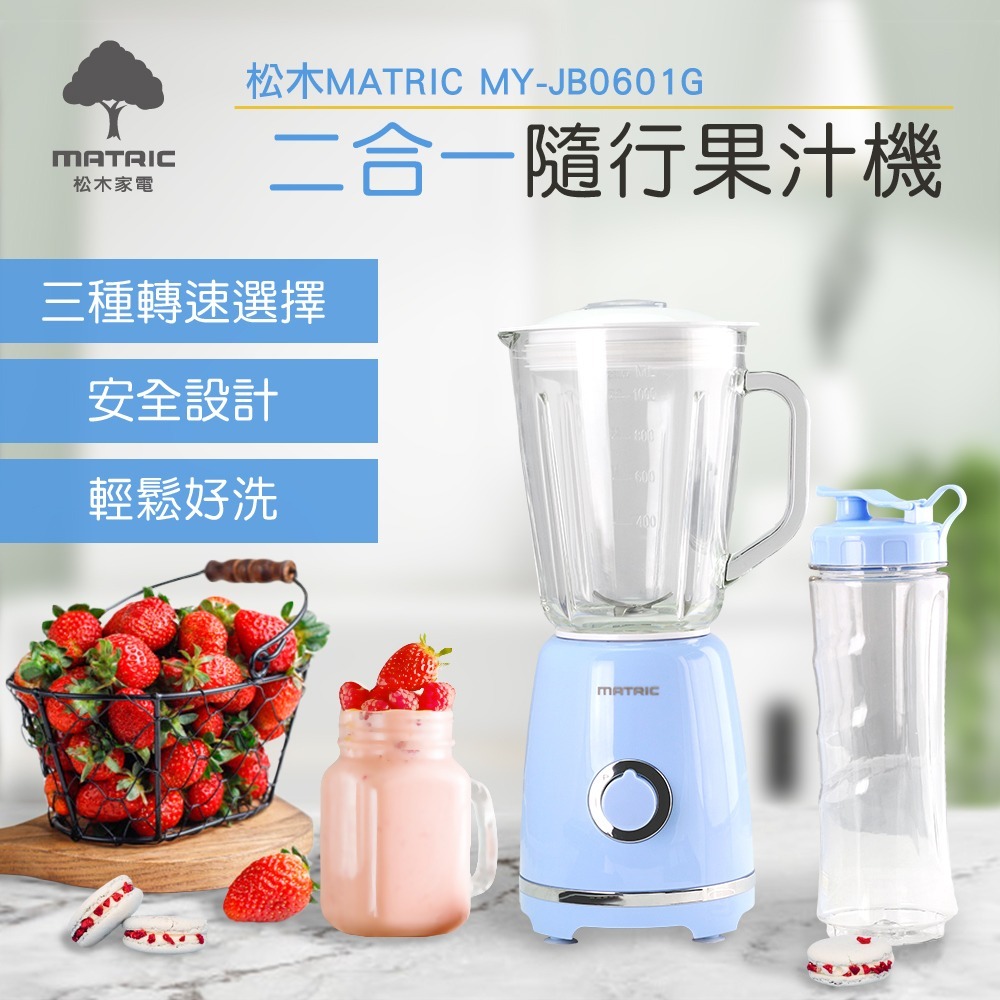 【MATRIC 松木】1000ml玻璃杯果汁機MY-JB0601G(內附600ml隨行杯一個)
