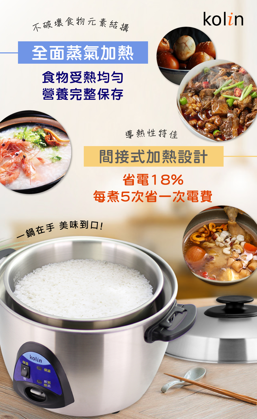 .底部蒸氣加熱,蒸.煮.滷.燉料理,留住美味。