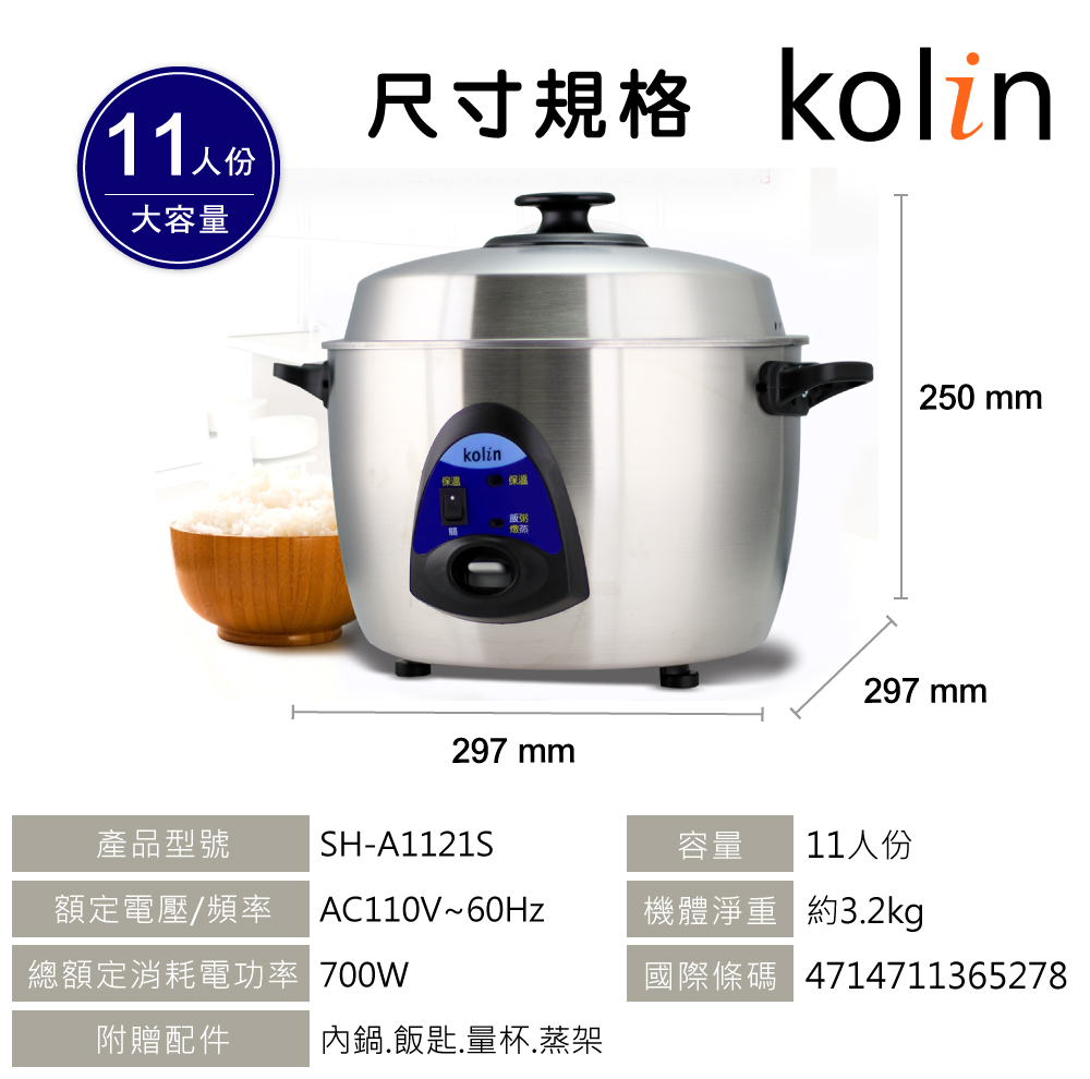 【Kolin 歌林】11人份全304不鏽鋼電鍋(SH-A1121S)