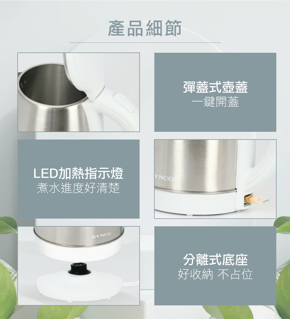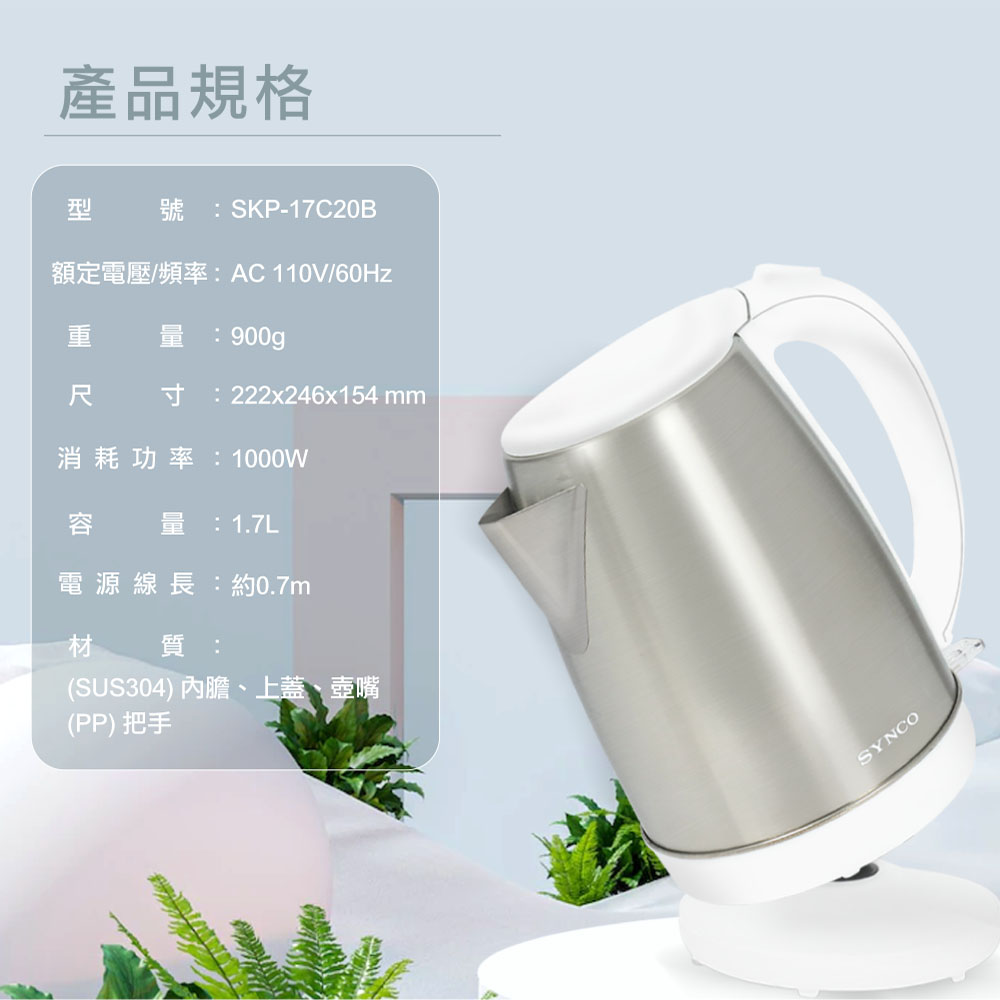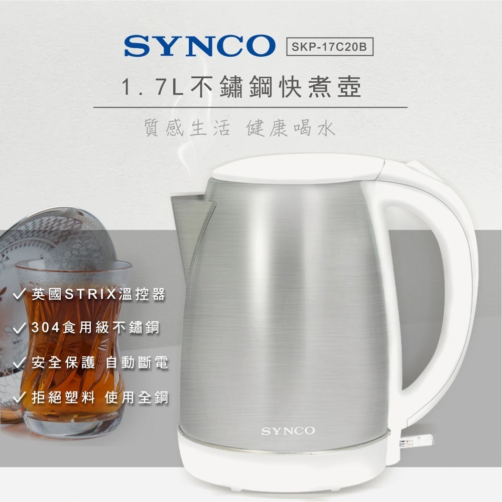 【SYNCO 新格牌】1.7L不鏽鋼快煮壺SKP-17C20B(英國Strix溫控)